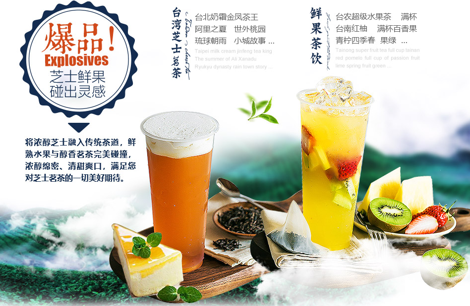 l 口感好,賺錢易:芝士醇香茗茶+清香鮮熟果茶+新式養生茶飲,新西蘭優質奶源+世界各地優質茶種+自然成熟采摘鮮果,芝士茶飲的醇香濃郁與鮮熟果茶清香甜美完美融合,清甜爽口、茗香四溢,口感好,才是賺錢的王道。