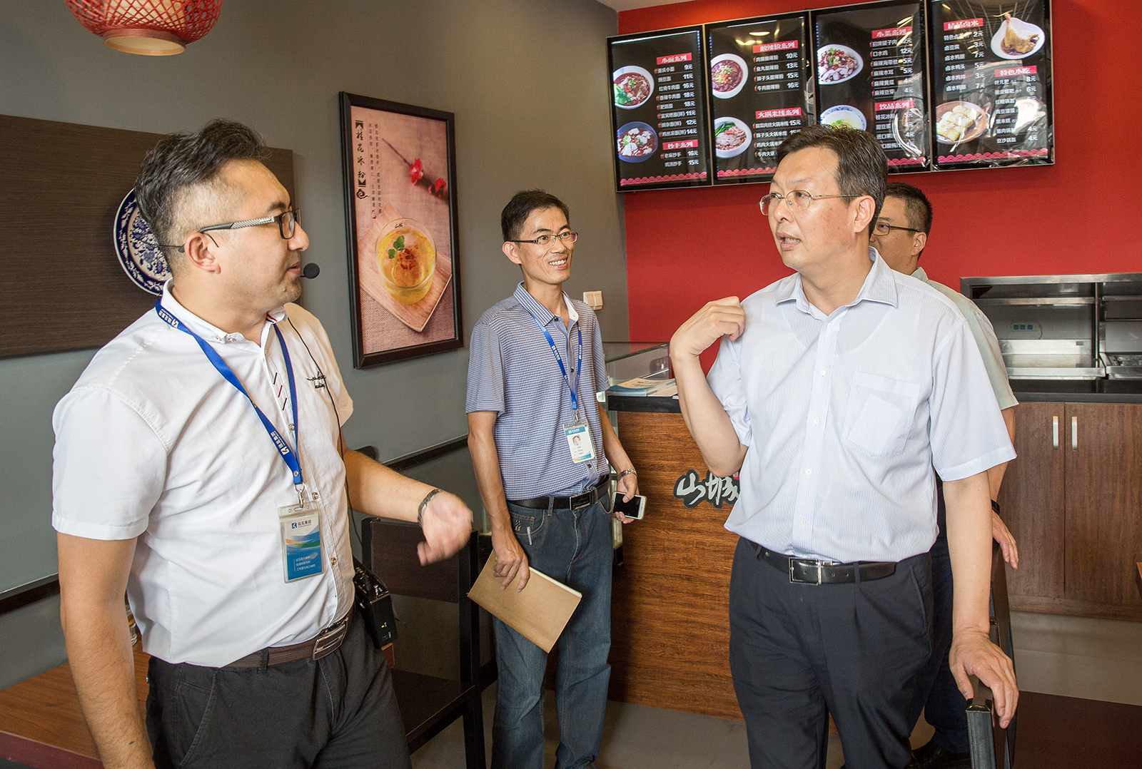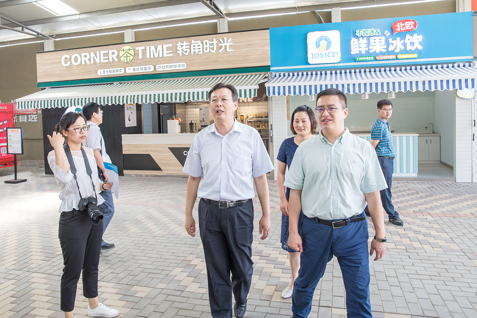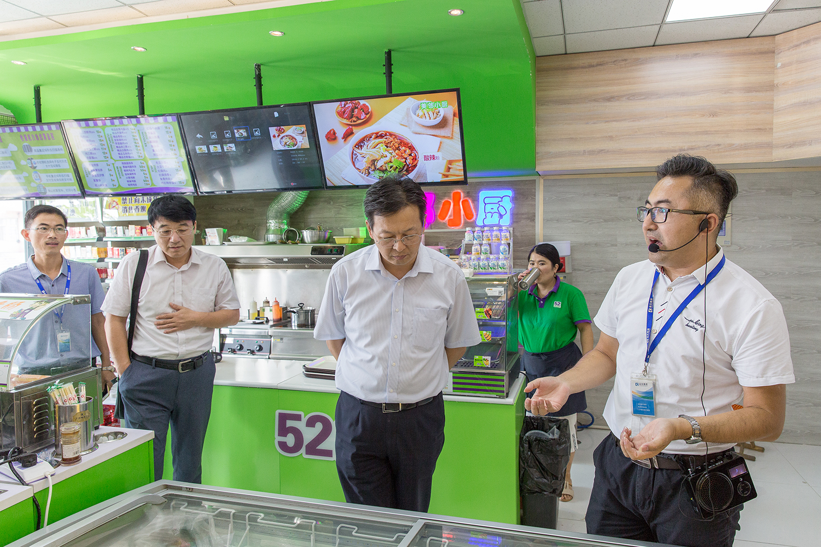 王書記一行來到小廝生活O2O體驗區,調研指導小廝外賣、小廝移動餐車和小廝洗車創業項目。